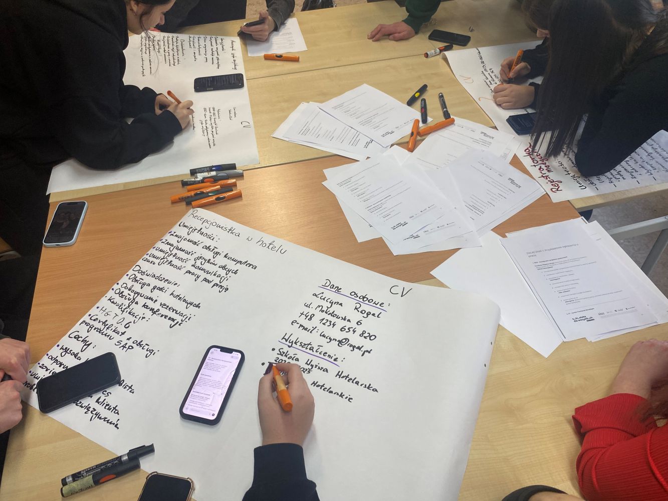 Spotkanie poprowadziła pani Hanna Łozińska. Uczestnicy dowiedzieli się m. in. gdzie odnajdywać oferty zatrudnienia i jak wygląda proces rekrutacji. Mieli również okazję poćwiczyć pisanie CV pod konkretne ogłoszenia, a także przeanalizować, jakie cechy są pożądane przez pracodawców. Mamy nadzieję, że pomoże to przyszłym absolwentom odnaleźć się na rynku pracy.