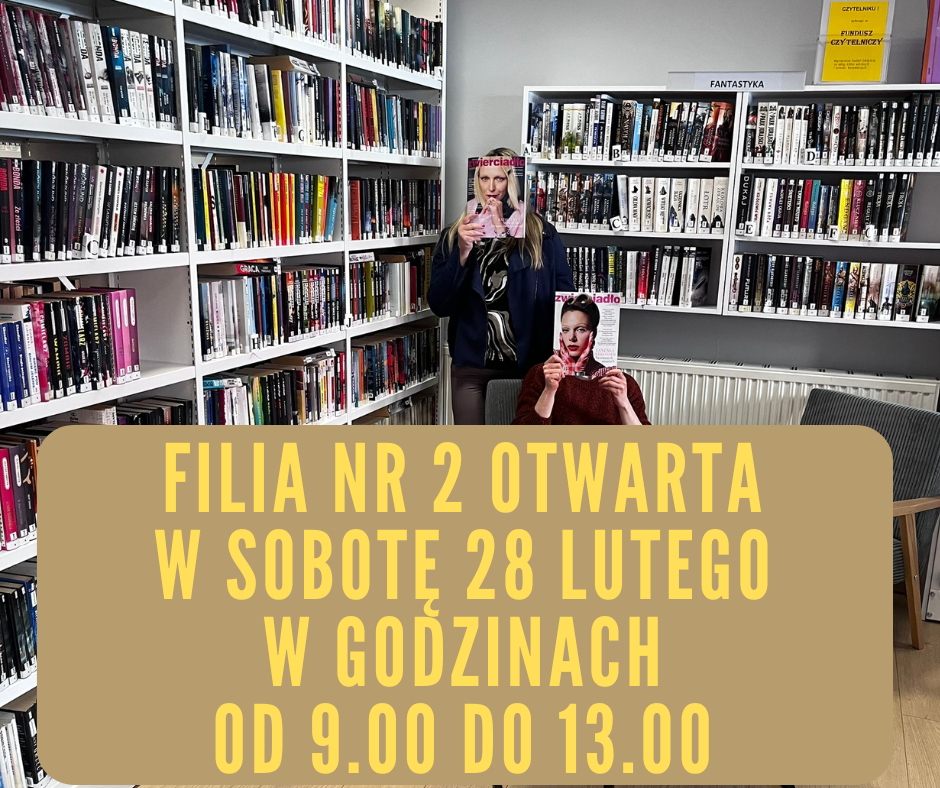 W najbliższą sobotę 28 lutego w godzinach 9:00 - 13:00 otwarta będzie Filia nr 2 przy ul. Iwaszkiewicza 12.